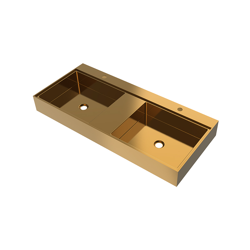 This double-basin stainless steel bathroom sink is the ideal choice for a two-person bathroom space. Its customized design and high-quality craftsmanship perfectly balance practicality and aesthetics, making it suitable for a variety of high-end bathroom settings.